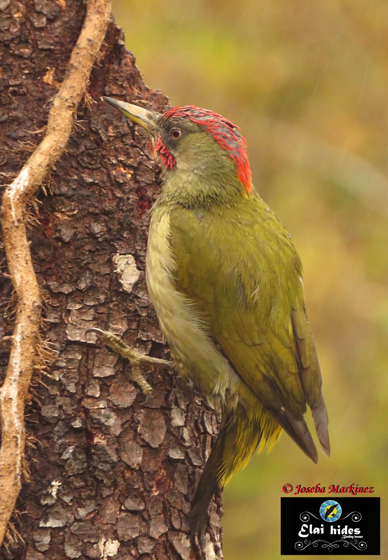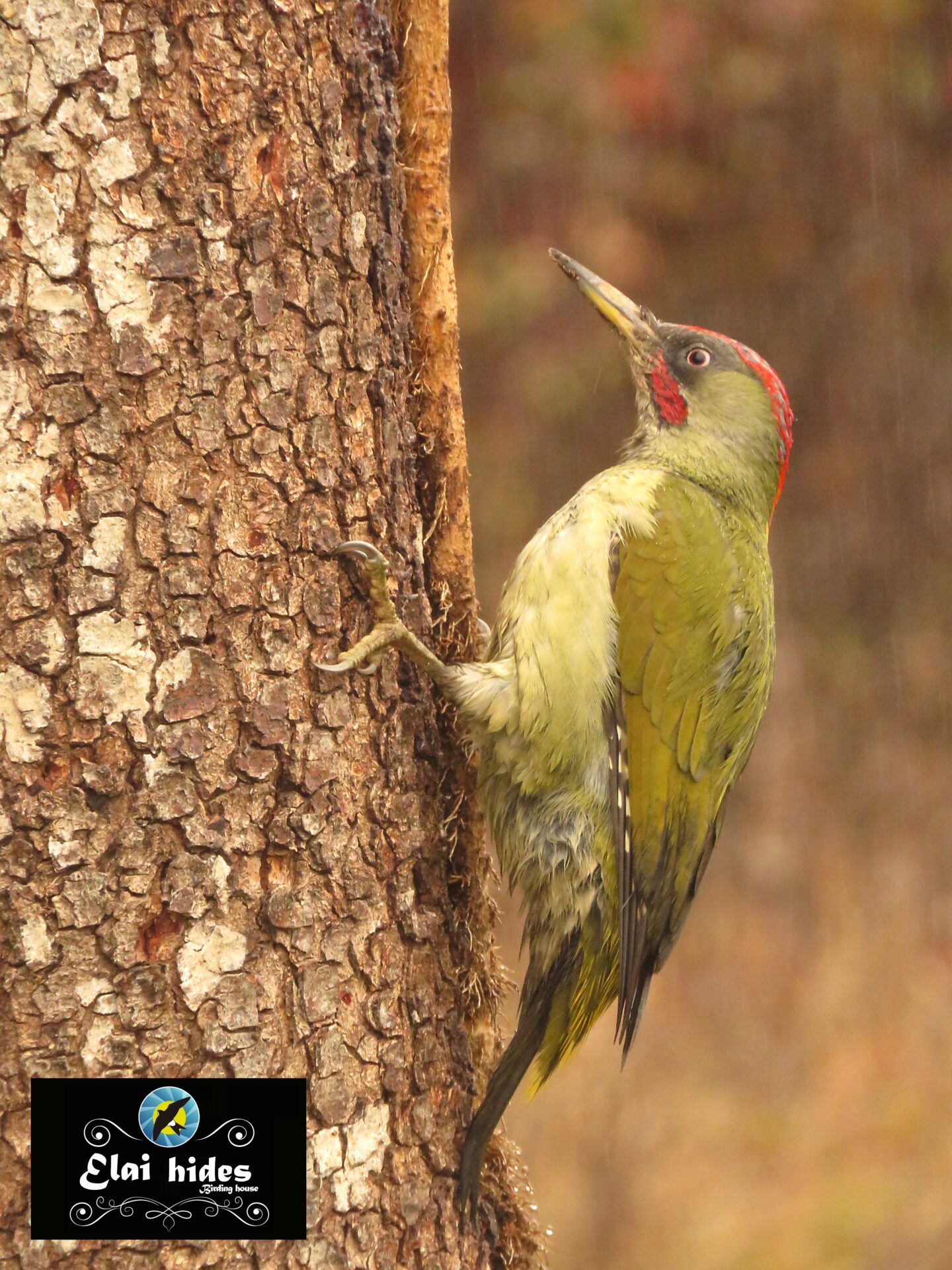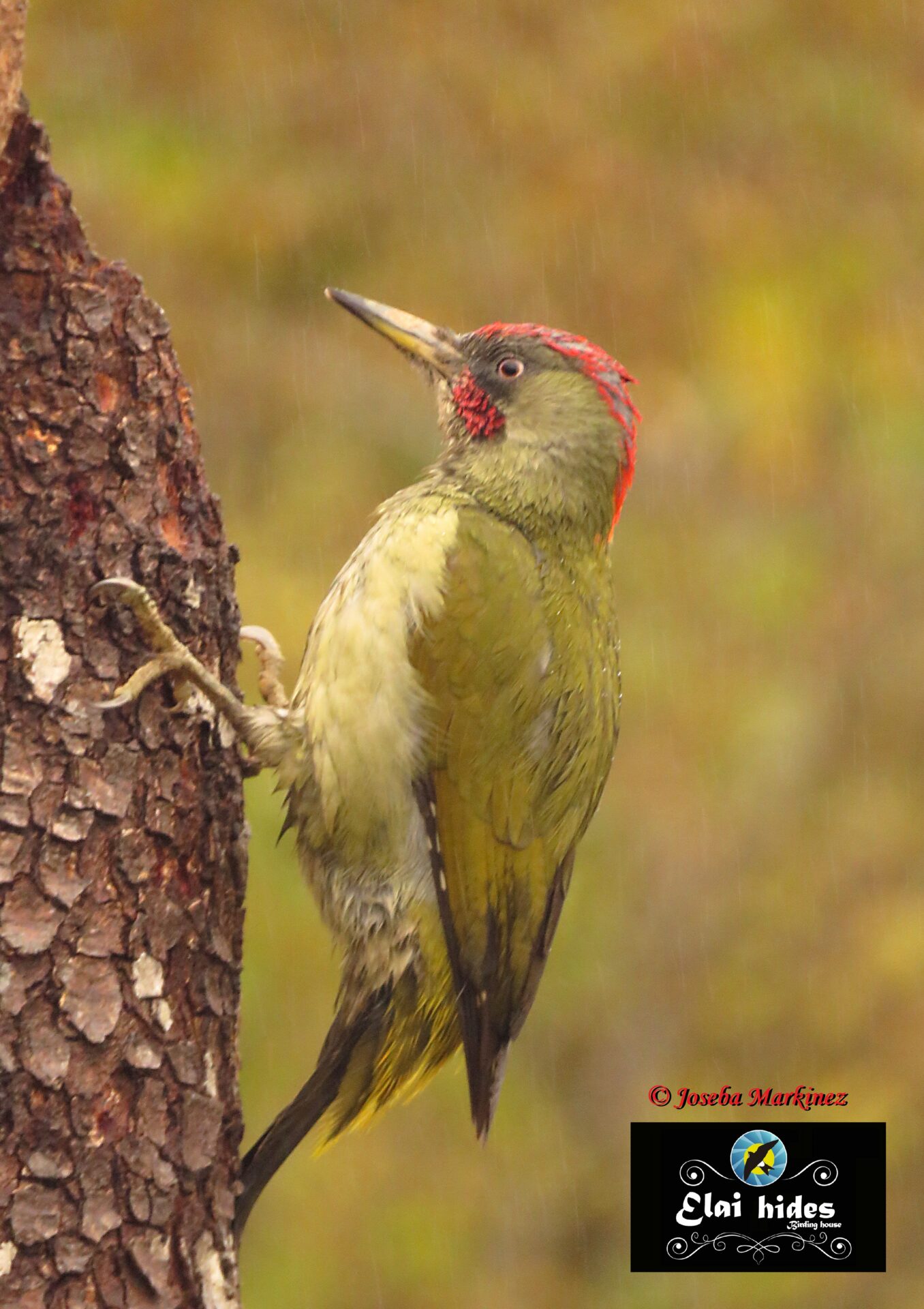 La lluvia cae sin cesar con su monótono repiqueteo sobre el tejado del hide hasta que un relincho estridente resuena con inusitada potencia. La voz salvaje del esquivo Pico verde, ahora endemismo ibérico bautizado por la ciencia como (Picus sharpei) nos despierta impertinente.
