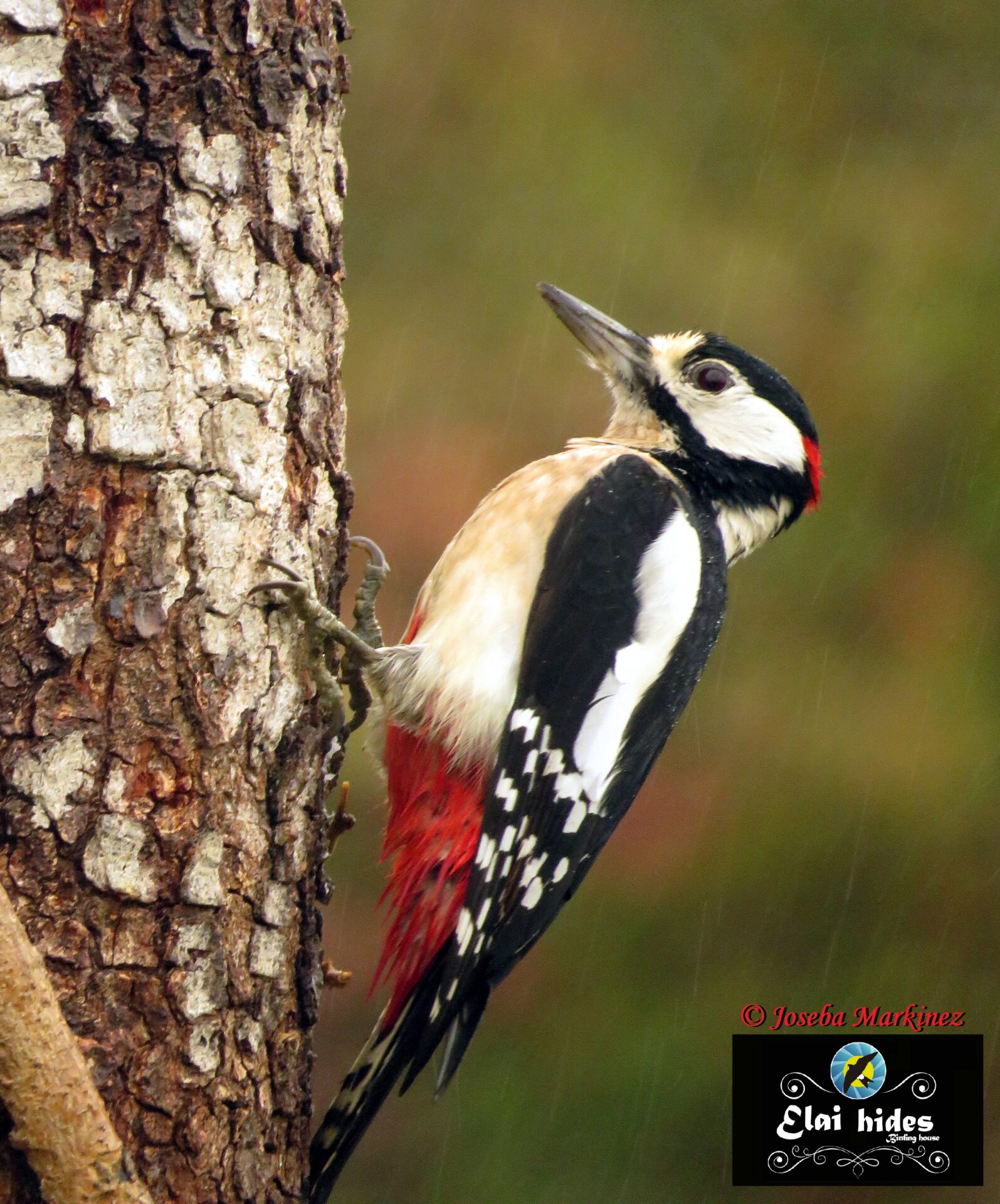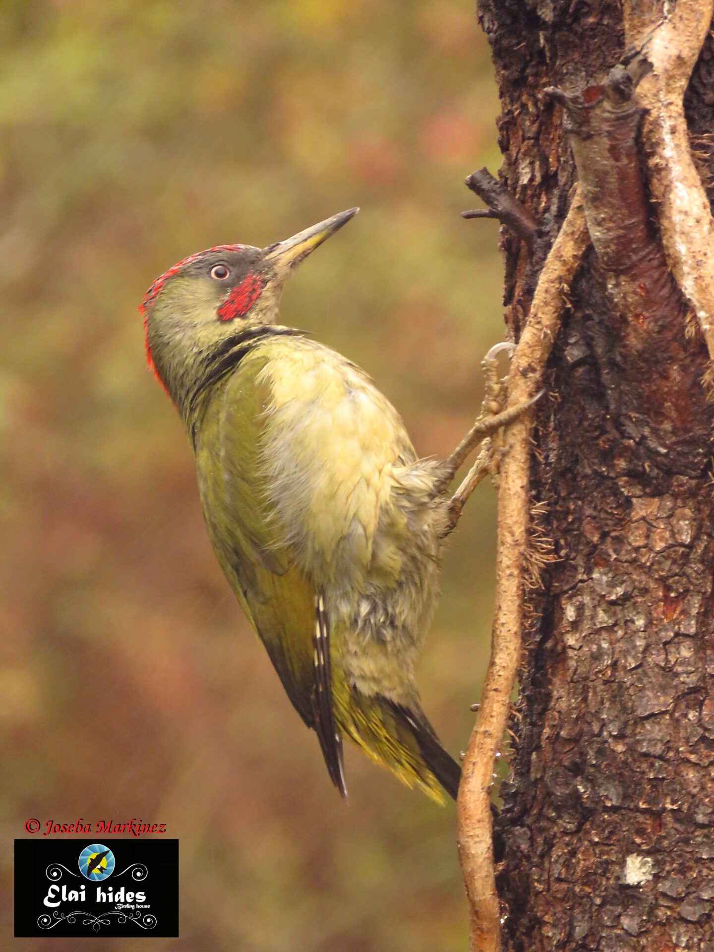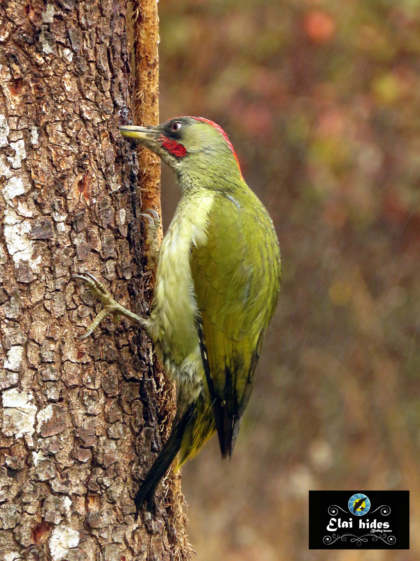 La lluvia cae sin cesar con su monótono repiqueteo sobre el tejado del hide hasta que un relincho estridente resuena con inusitada potencia. La voz salvaje del esquivo Pico verde, ahora endemismo ibérico bautizado por la ciencia como (Picus sharpei) nos despierta impertinente.