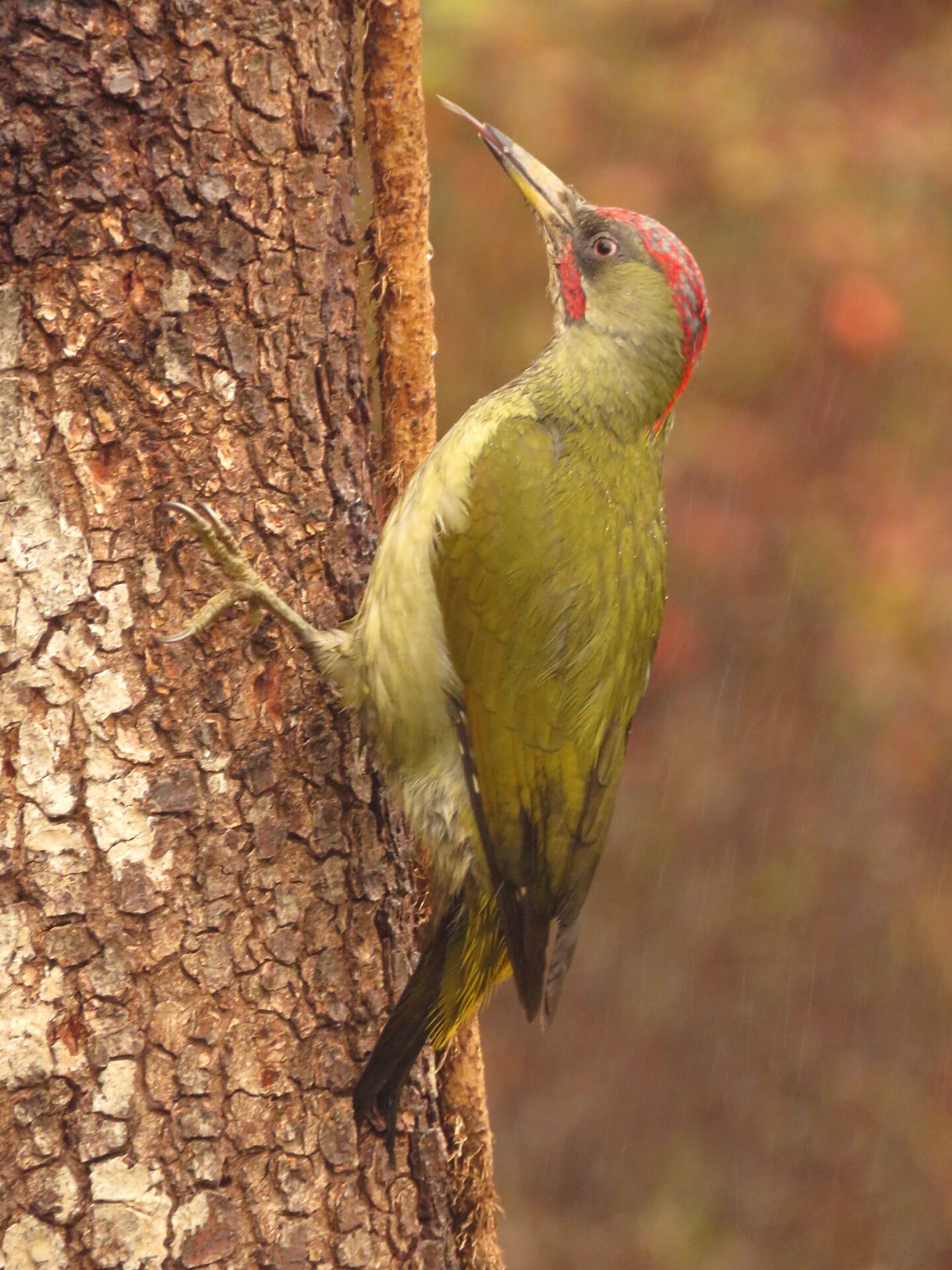 Mientras tanto, ahí fuera sigue lloviendo y las gotas de agua resbalan por el plumaje del ave al que no parece molestarle lo más mínimo éste interminable aguacero. Hoy el día se le ha dado bien. Mañana será otro día.