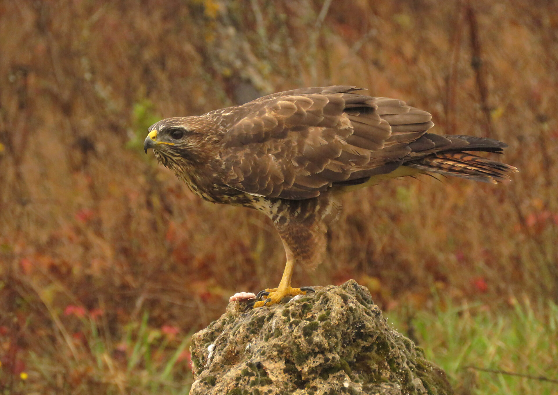 Bien entrado el mes de Noviembre, en el campo se van produciendo cambios importantes. El interminable y seco verano va quedando atrás y la lluvia abre paso por fin al otoño. Los colores ocráceos van ganando terreno a los verdes y la luz va perdiendo intensidad. Las aves presienten ya su etapa más dura del año. Cada vez necesitan comer más para mantener sus metabolismos con ambientes fríos y húmedos pero tienen cada vez menos tiempo para alimentarse en unos días cada vez más cortos.