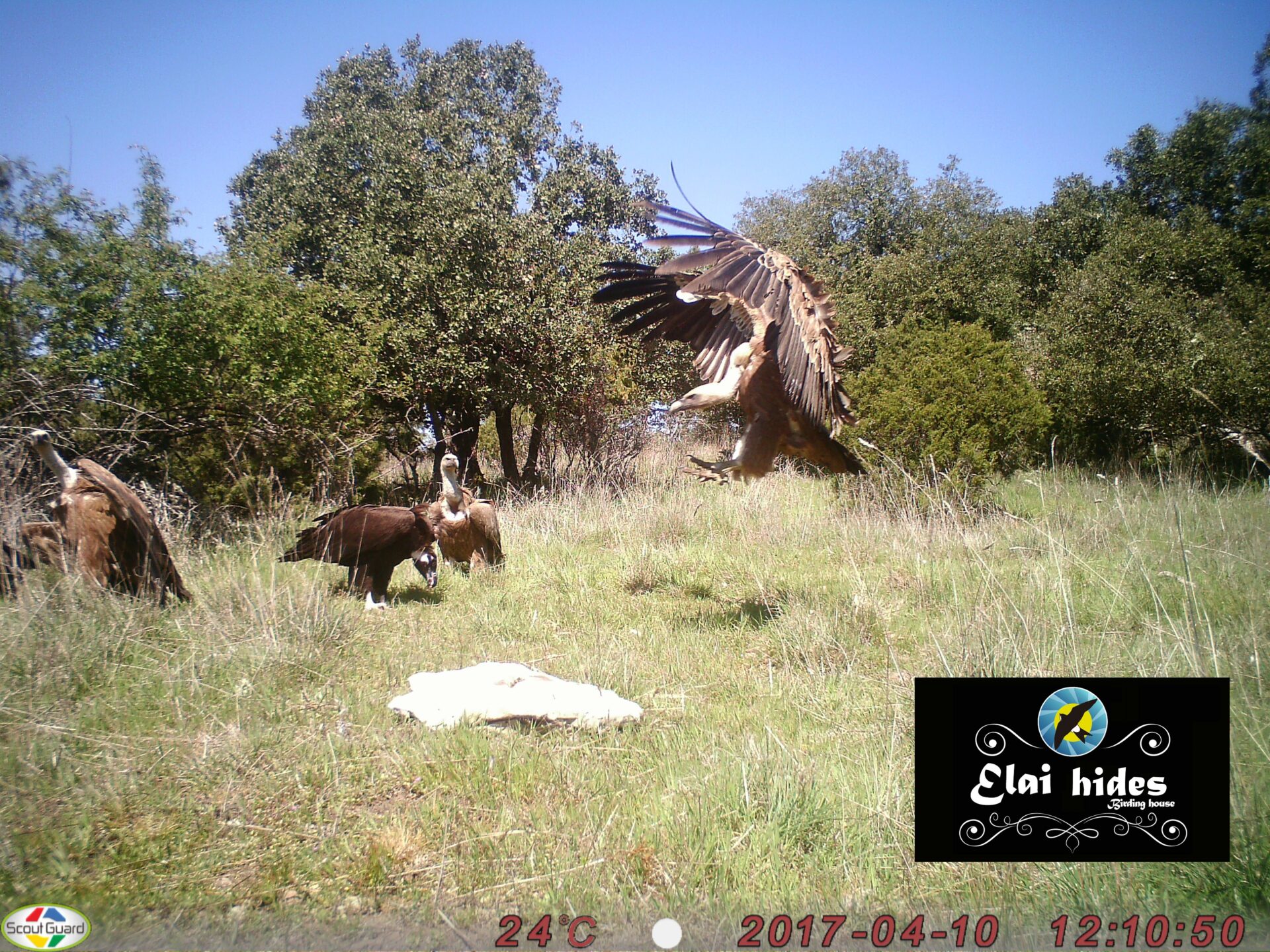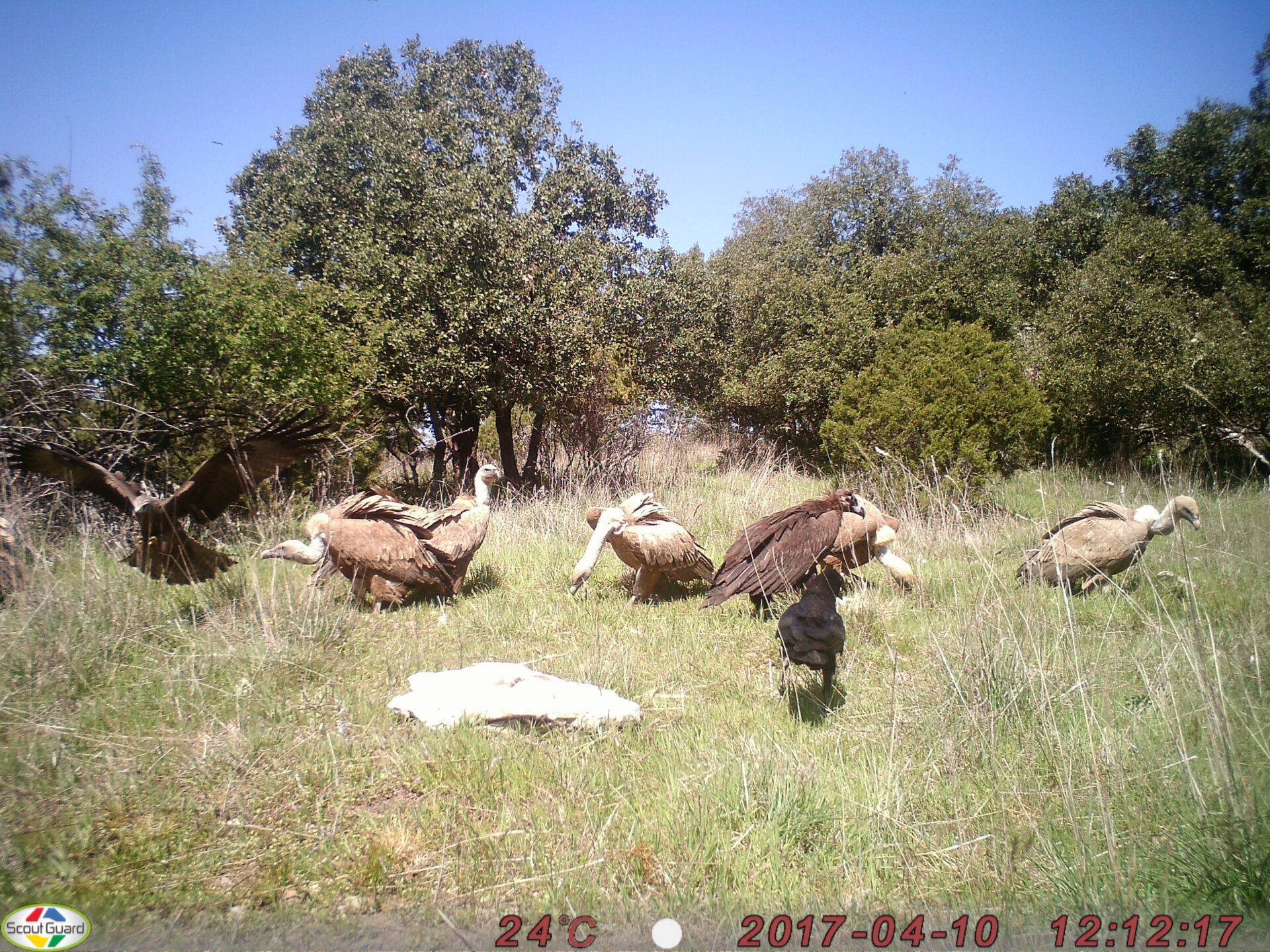 Una pareja de alimoches también está fidelizándose y nos hace mucha ilusión contribuir a su conservación con alimento seguro dada su delicada situación demográfica.