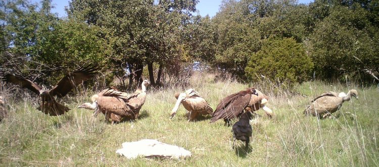 La presentación, escasas cantidades y tipo del alimento aportado facilita la aparición de otras especies y limita a los buitres leonados evitando que éstos monopolicen el hide y excluyan a otros comensales más vulnerables.