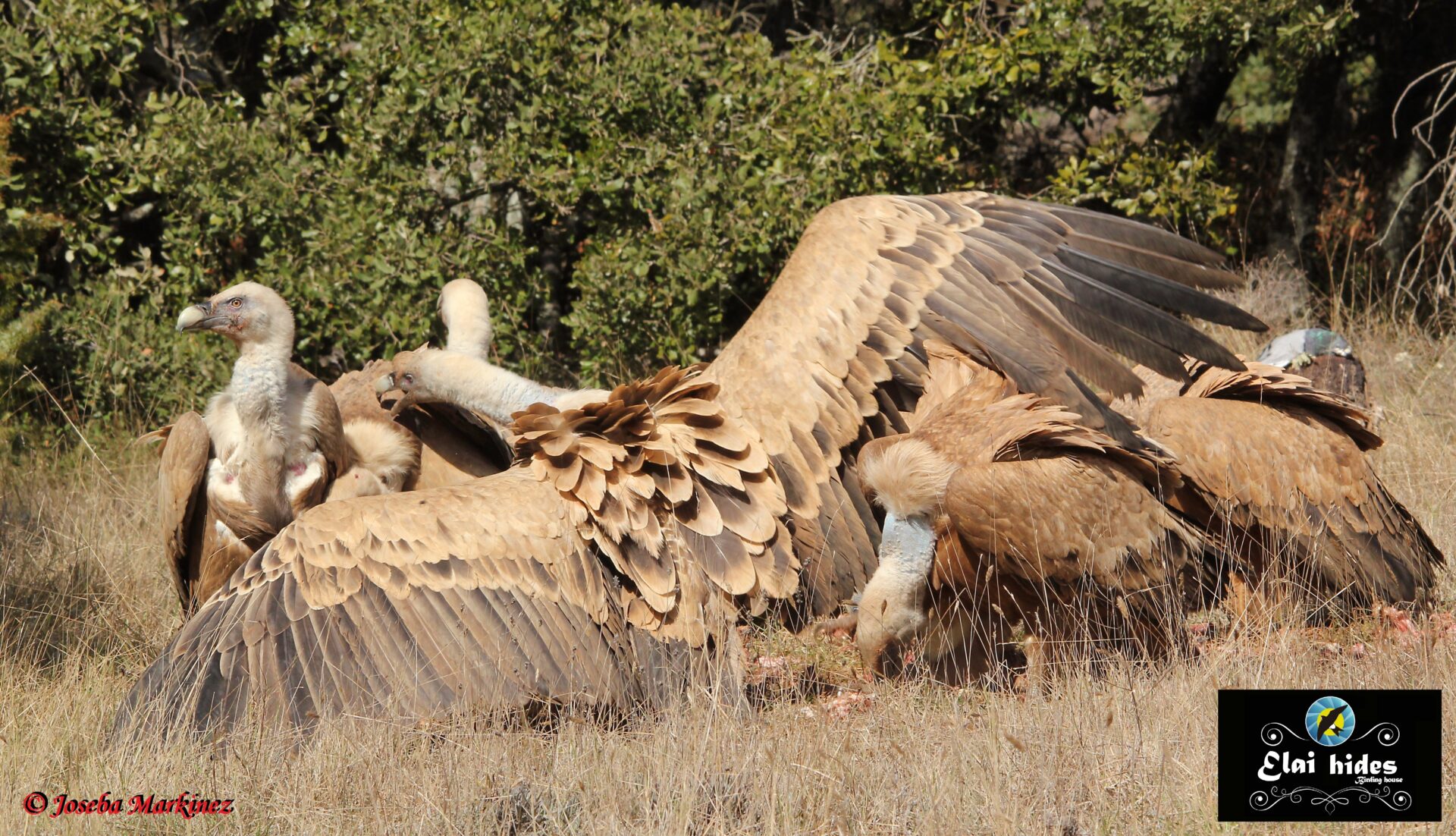 La rapaz sigue su camino y se detiene frente a un grupo de carcasas. De pronto lanza su garra derecha con inusitada violencia hacia una carcasa, como queriendo asegurarse de que el pollo ya está muerto (si hubiera estado vivo, ciertamente lo hubiera matado), acto seguido lo traba con esa misma pata y emprende el vuelo hacia mí. Puede que me rozara con la punta de sus rémiges. Ya puedo respirar y pestañear. La calma vuelve al monte…y al hide.