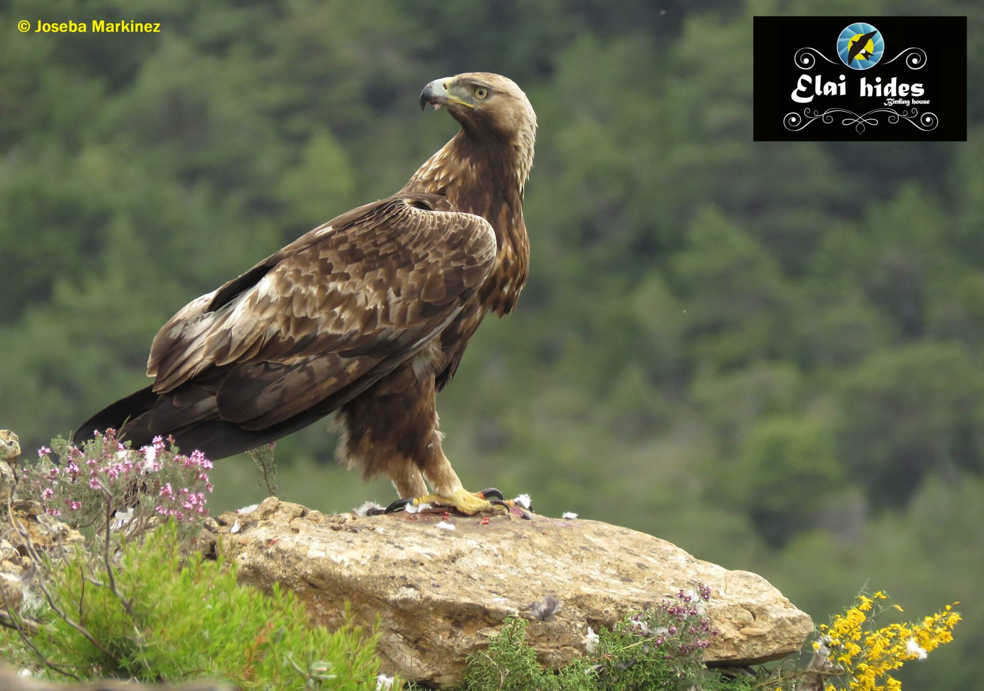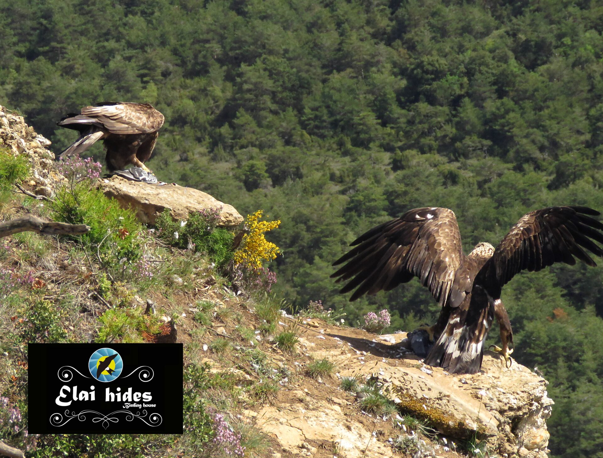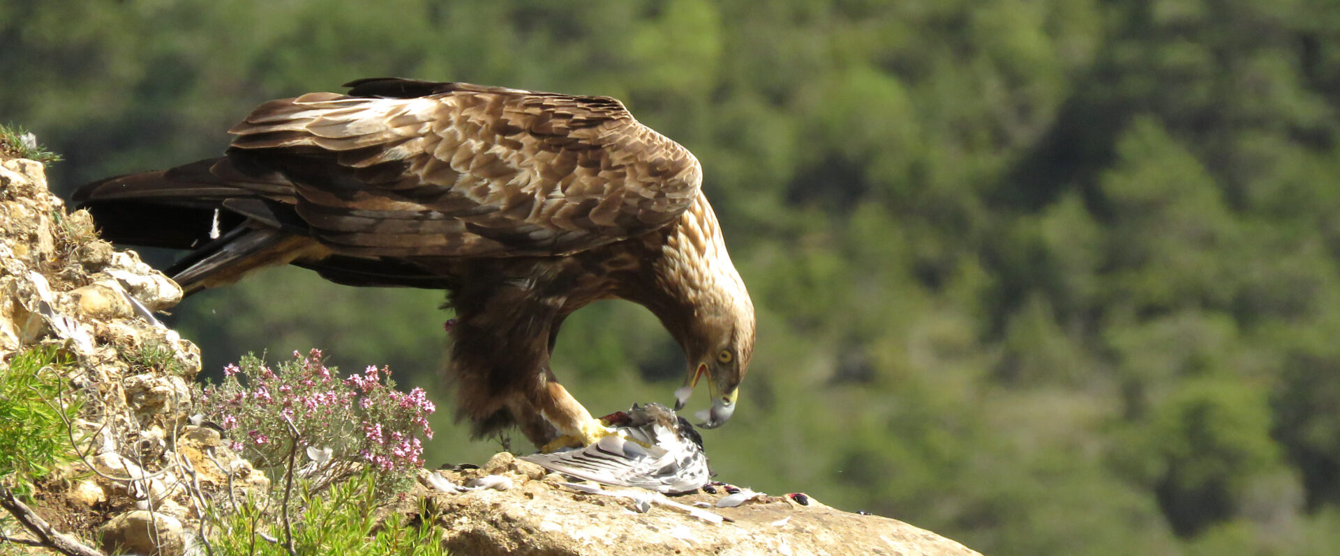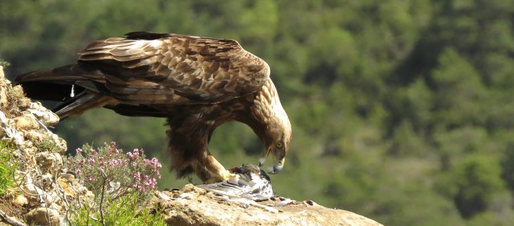 El pollo de nuestra magnífica pareja de águilas reales acaba de nacer en el histórico nido del desfiladero y el campo se cubre del amarillo de las espinosas otakas (Ulex europaeus) y del intenso rosa de los aromáticos y medicinales tomillos (Tymus vulgaris).