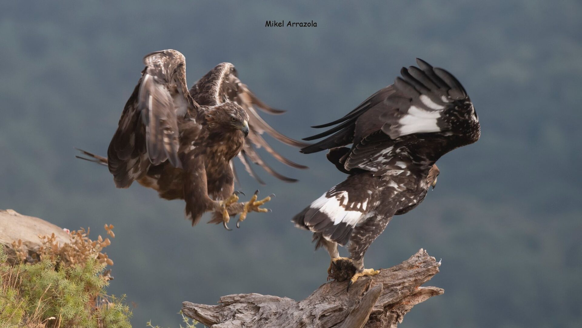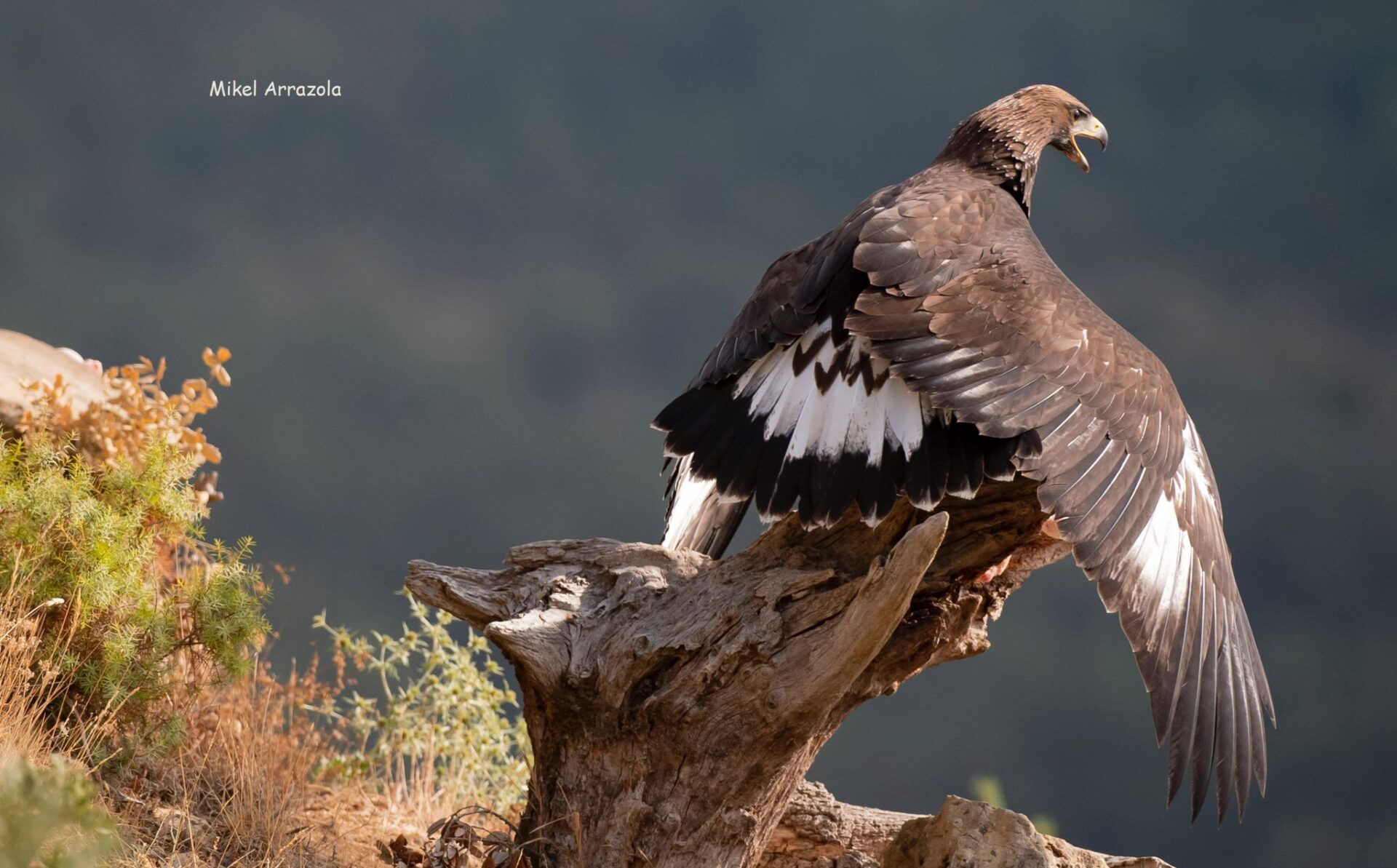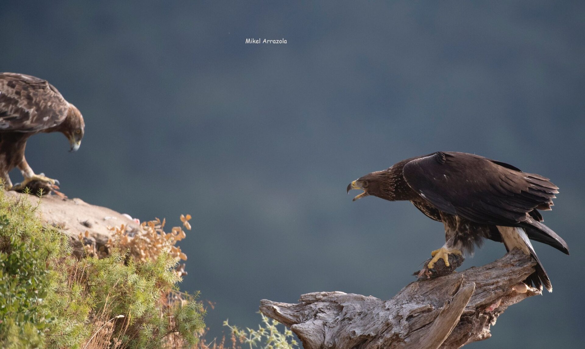 Un año más, la maravillosa pareja de águilas reales que visita nuestro hide, ha conseguido sacar adelante a un hermoso pollo que ya deleita nuestros ojos y objetivos fotográficos con sus majestuosos vuelos. El hide Saitoki lleva funcionando desde febrero de 2018 en su nueva ubicación, y desde entonces, la pareja ha sacado adelante seis pollos. Nos enorgullece saber que seguramente, las cebas selectivas y cuidadosamente pautadas en determinadas épocas críticas, hayan tenido algo que ver con éste continuado éxito reproductivo.
