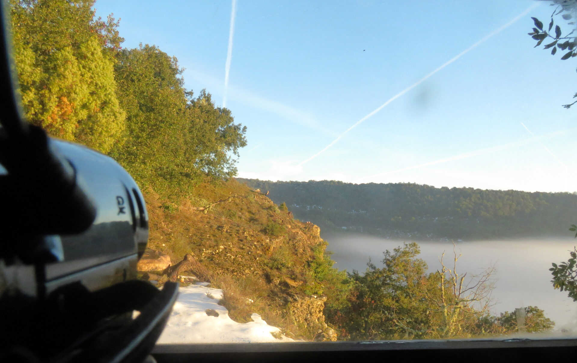 La panorámica que se contempla desde su amplio cristal espía, es mágica. En la foto se aprecia el maravilloso paisaje adornado por el mar de nubes del valle y por los últimos retazos de nieve del último temporal. Nos encontramos rodeados de extensos bosques de Pino silvestre salpicados por viejos pies de quejigos, encinas, enebos y sabinas. Éstos ecosistemas boscosos propician que ocasionalmente nos visiten rapaces de extraordinaria belleza como el azor o el gavilán por el día o garduñas y gatos monteses tras el ocaso.